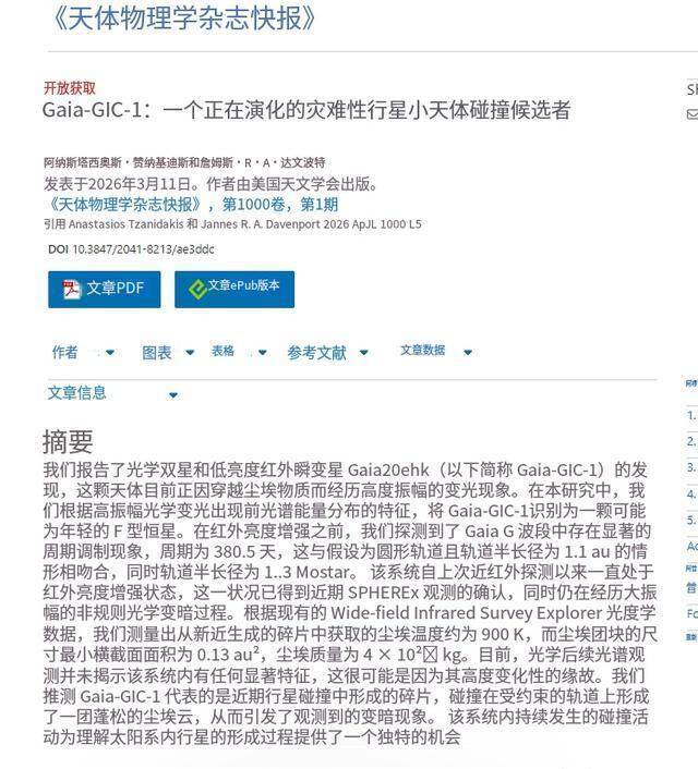 相关成果2026年3月11日发表于《天体物理学杂志快报》。