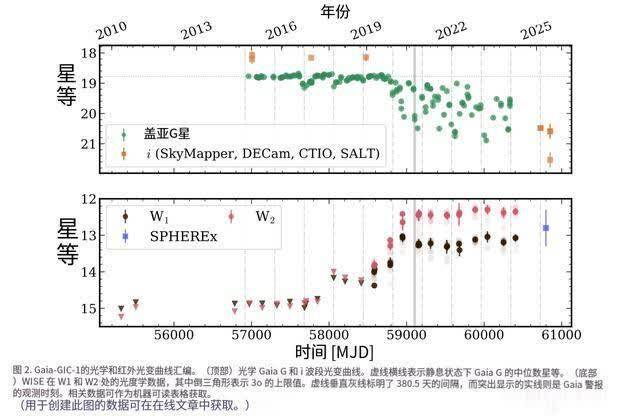 通过梳理盖亚卫星、WISE红外卫星、南北半球地面望远镜横跨十余年的多波段数据,研究团队完整还原了事件的演化脉络: